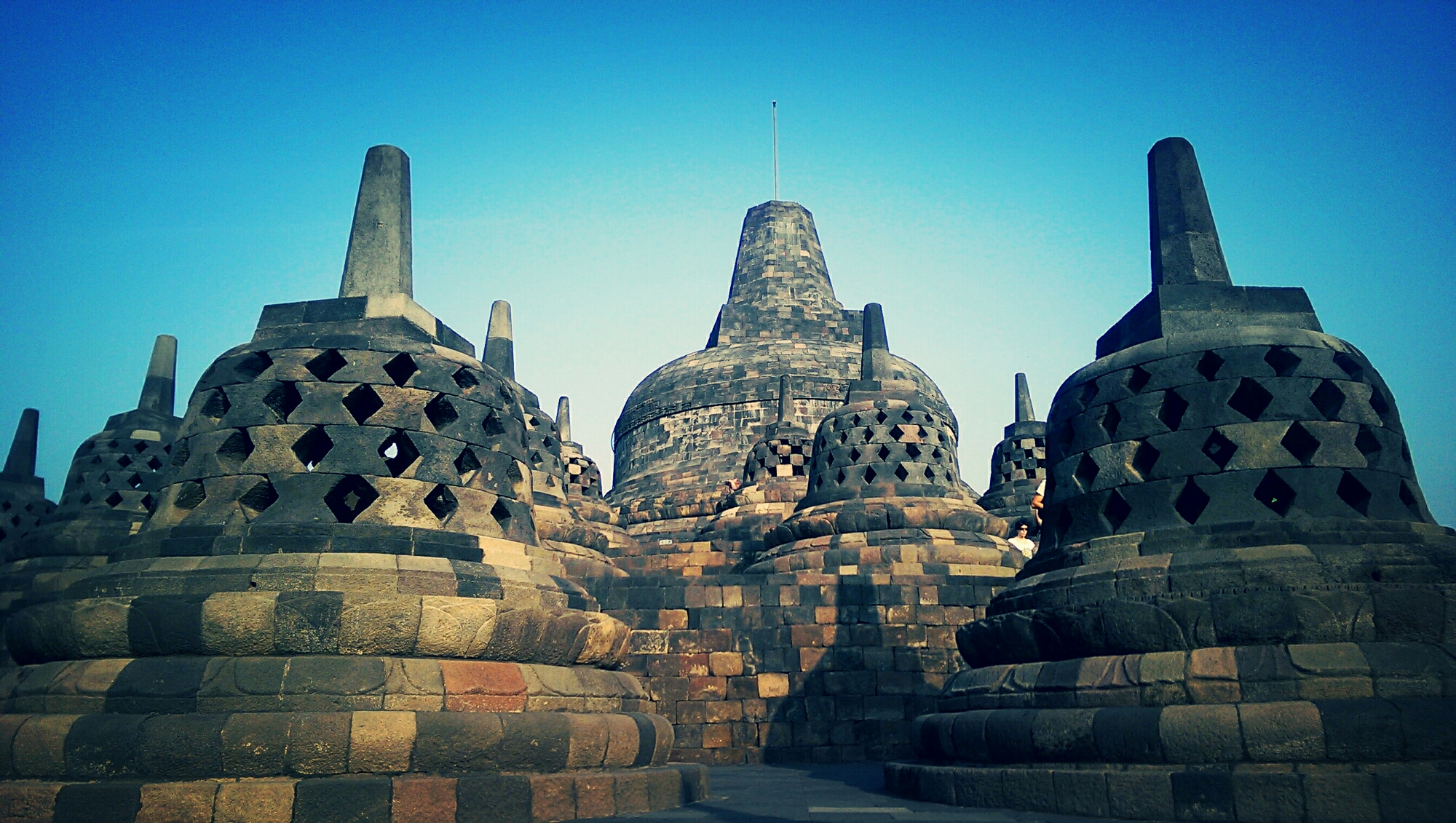 Na zonsopgang rijden we naar de Borobudur tempel en kan ik niets anders zeggen dan dat het dubbel en dwars waard is om zo vroeg je bed uit te gaan. Het is misschien een toeristische trekpleister, maar zeker iets wat je bekeken moet hebben als je op Java bent! Het is wel wat mistig, maar het uitzicht blijft overweldigend! Op het moment dat ik de Borobudur tempel bezoek, valt het reuze mee qua drukte en kan ik voldoende plaatjes schieten zonder toeristen erop. Lucky me!