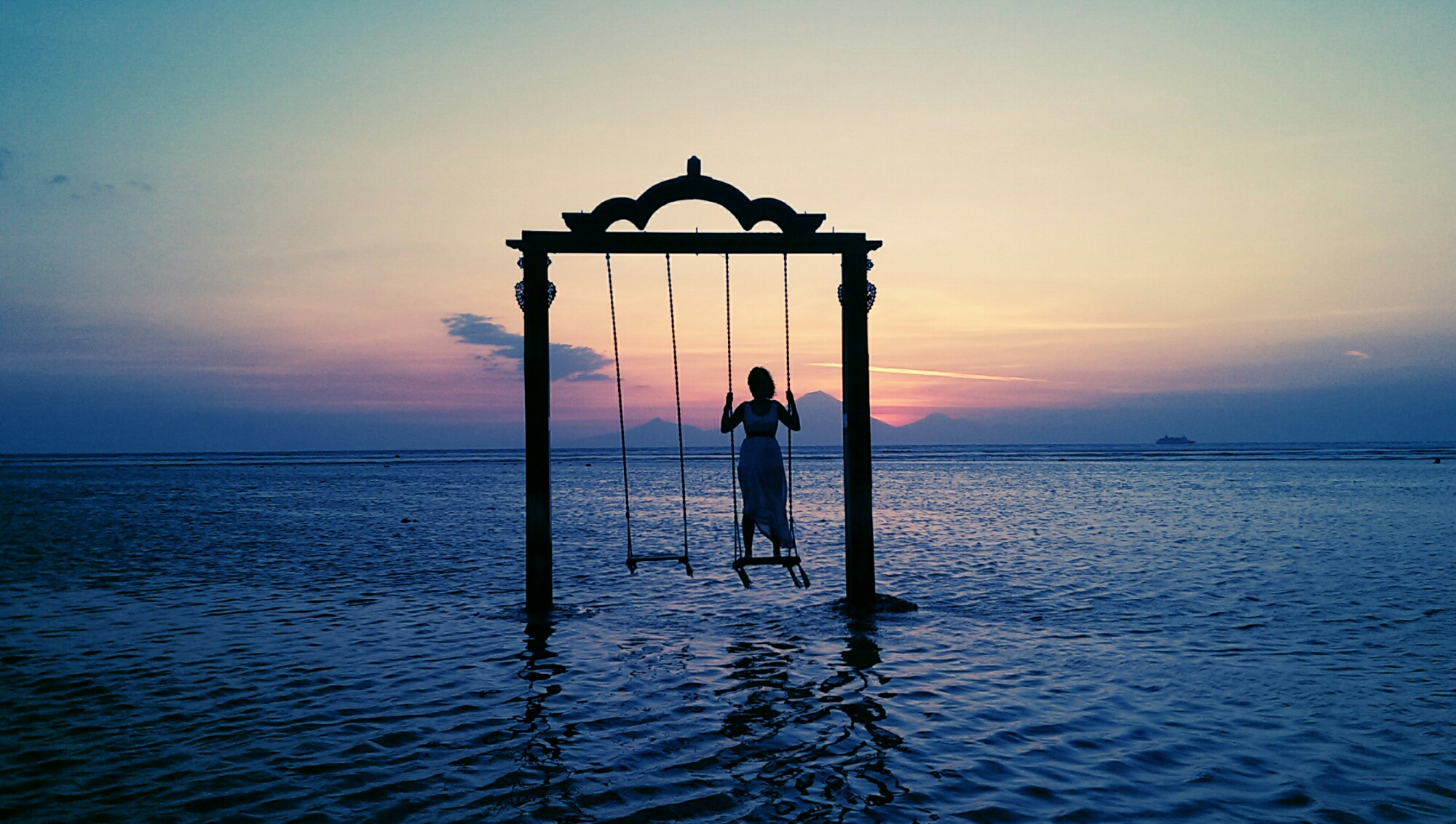 Rond 16:30 gaan we snel terug naar onze cottages om ons om te kleden en bij een sunsetpoint de zon onder te zien gaan. We fietsen naar Ombak Sunset omdat daar een schommel in de zee staat en zorgt voor mooie kiekjes.