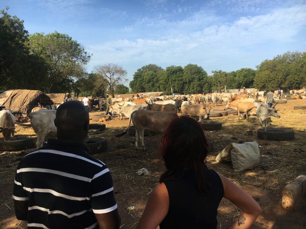 2. Vervolgens gaan we langs een veehouderij met geiten, schapen, koeien en kippen. Hier kun je vee kopen voor alle Gambiaanse feesten en partijen. Je kunt de dieren daar laten slachten of meenemen en dit zelf doen. Ik merk dat dit niet zo mijn ding is, dus na een klein rondje gaan we weer verder.